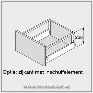 Blum lade TANDEMBOX Antaro met TIP-ON en BLUMOTION, minimale inbouwhoogte 228 mm.
