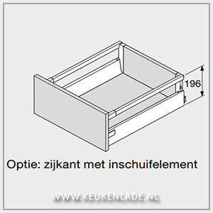 Blum lade TANDEMBOX Antaro met TIP-ON en BLUMOTION, minimale inbouwhoogte 196 mm.