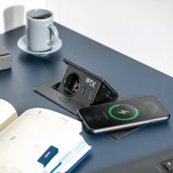 Met het Avaro plus inbouw stopcontact met ingebouwde draadloze oplader, voorziet u uw buro, werkblad of keuken eenvoudig van een extra stopcontact en 1 x USB-A en 1 x USB-C aansluiting. Daarnaast laadt u uw telefoon eenvoudig op met de ingebouwde draadloze oplader. Daardoor is dit stopcontact zeer geschikt voor gebruik op uw werkplek, in hotels, winkels, scholen en universiteiten.