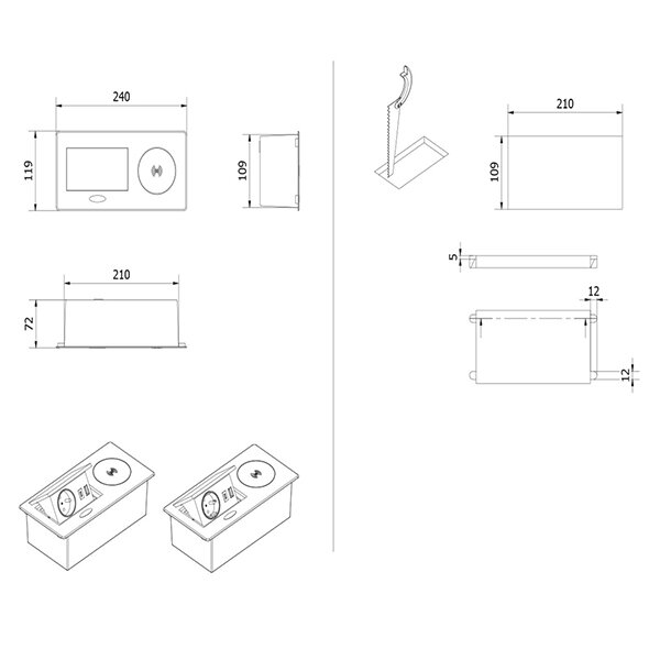 - Benodigde gat grootte: 109 x 210 mm (d x b)