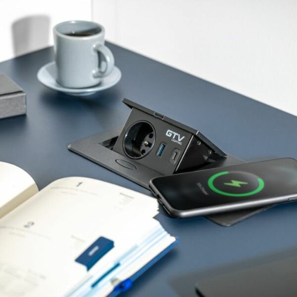 Met het Avaro plus inbouw stopcontact met ingebouwde draadloze oplader, voorziet u uw buro, werkblad of keuken eenvoudig van een extra stopcontact en 1 x USB-A en 1 x USB-C aansluiting. Daarnaast laadt u uw telefoon eenvoudig op met de ingebouwde draadloze oplader. Daardoor is dit stopcontact zeer geschikt voor gebruik op uw werkplek, in hotels, winkels, scholen en universiteiten.
