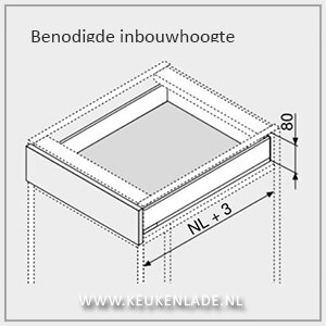 De Blum Legrabox lade set is geschikt voor het maken van een Blum Legrabox N lade met inbouwhoogte van 80 mm.