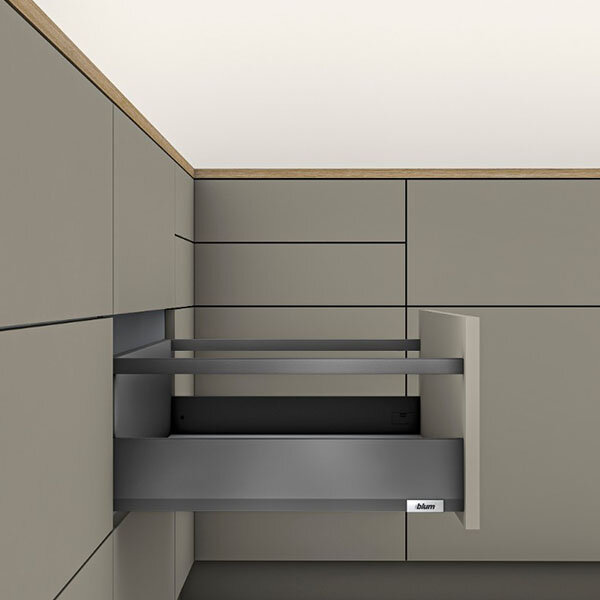 Blum MERIVOBOX keukenlade, inbouwhoogte van 209 mm met reling