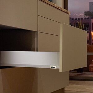 Blum MERIVOBOX keukenlade, inbouwhoogte van 85,5 mm.