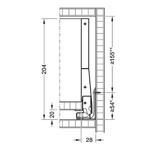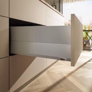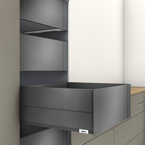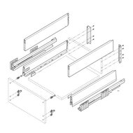 De Blum Merivobox lade set is geschikt voor het maken van een Blum Merivobox E voorraadlade, met boxcap, met zijwandhoogte van 192 mm. De benodigde hoogte voor het inbouwen van de lade is minimaal 209 mm