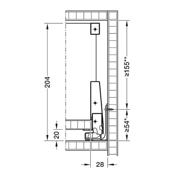 De Blum Merivobox lade set is geschikt voor het maken van een Blum Merivobox E voorraadlade, met reling, met zijwandhoogte van 192 mm. De benodigde hoogte voor het inbouwen van de lade is minimaal 209 mm