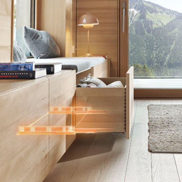 Blum Tandemgeleider met geïntegreerde Tip-on