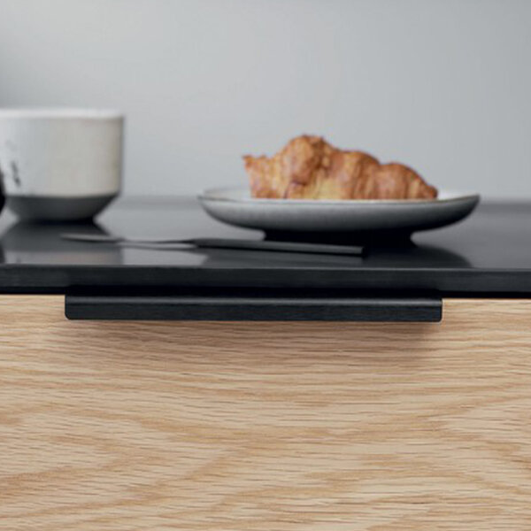 Greep Artisan is een verfijnde greep met prettige grip. De greep kan door middel van schroeven bevestigd worden aan het front van de lade of de kast.