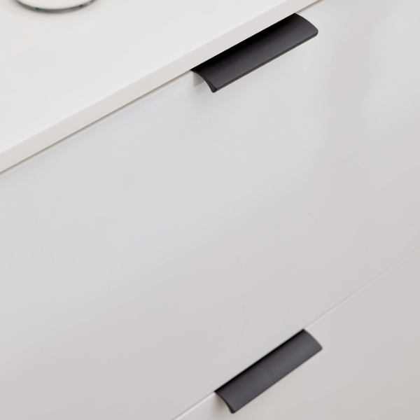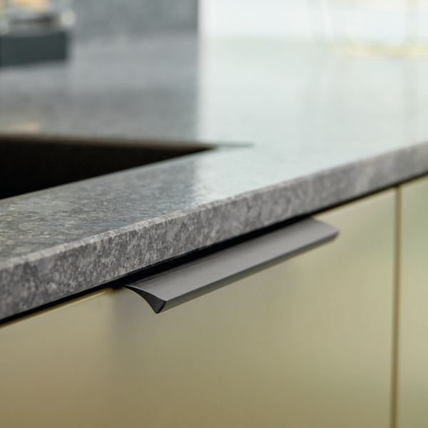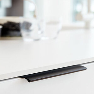 Greep Edge Straight kan door middel van schroeven bevestigd worden aan het front van de lade of de kast.