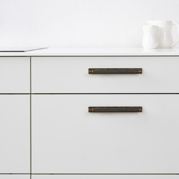 De grepen en knoppen uit de nieuwe Manor collectie voegen een vleugje warmte toe aan een industrieel interieur. Elke knop en greep in deze serie is voorzien van het kenmerkende oppervlak met diamant patroon. De knoppen en grepen zijn uitzonderlijk prettig in gebruik en hebben een opvallend uiterlijk. Deze donker antiek bronzen afwerking is zeer goed te combineren met de nieuwe messing patina kraan van Quooker. De greep is verkrijgbaar in twee verschillende lengtematen, maak hiervoor uw keuze!