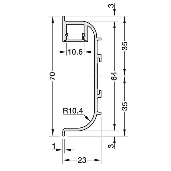 Greeplijst C-profiel van aluminium met een bruikbare lengte van 2440 mm.