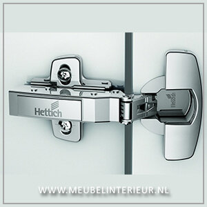 Hettich Sensys 8675 scharnier met opkliktechniek zonder automatische sluiting. Bijvoorbeeld te gebruiken voor ' push to open ' toepassing bij greeploze deuren.