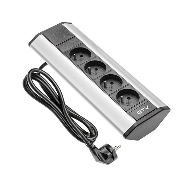 Hoekstopcontact met 4 aansluitingen 220V-240V van GTV, zilver, penaarding (BE/FR)