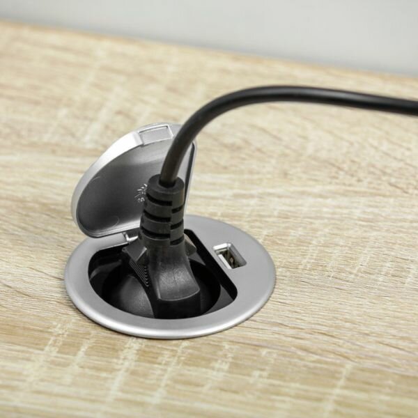 Met dit inbouw stopcontact voorziet u werkbladen eenvoudig van extra stroompunt en USB aansluiting.