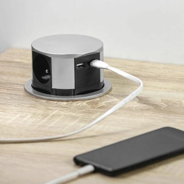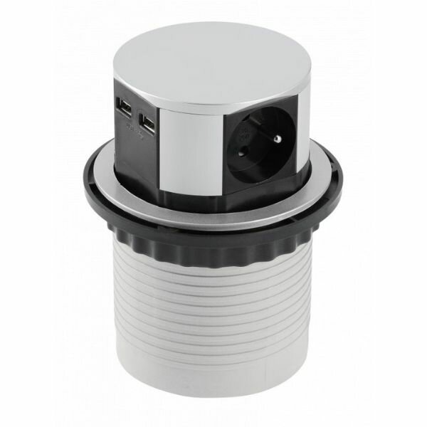 Inbouw stopcontact pop up, 3 stopcontacten, 2 USB, penaarding (BE/FR)