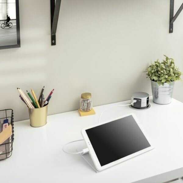 Met de inbouw oplossing voorziet u werkbladen eenvoudig van extra stroompunten.