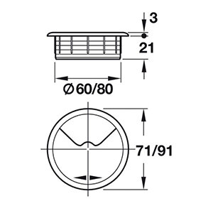 / Kabeldoorvoer zilvergrijs Ø 60mm