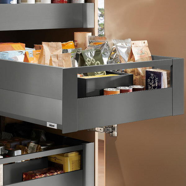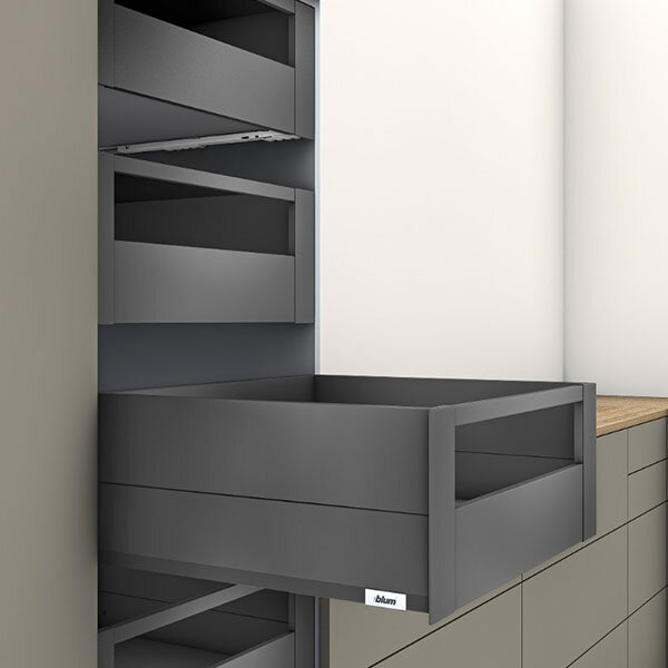 Blum MERIVOBOX binnenlade boxcap met reling, inbouwhoogte van 209 mm
