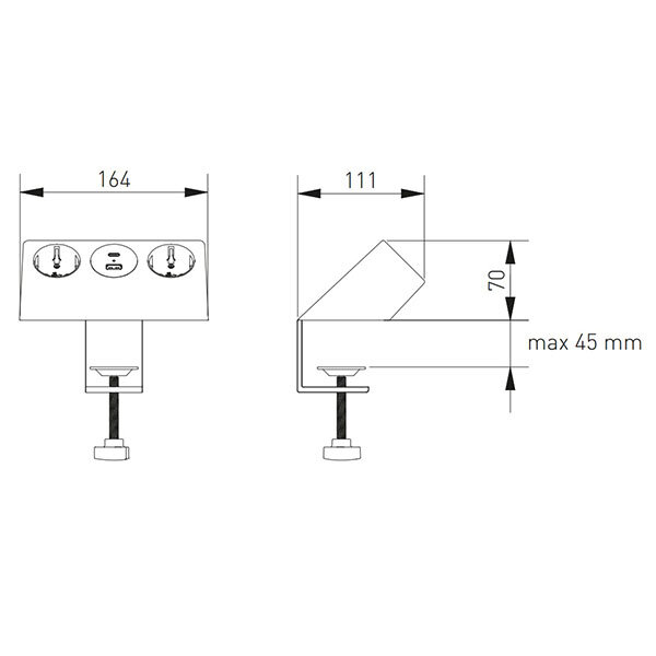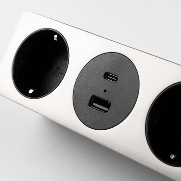 Het opbouw stopcontact Sofito is eenvoudig te bevestigen op uw buro of in de kast. Hiermee voorziet u werkbladen eenvoudig van twee extra stroompunten, een USB-A en een USB-C.