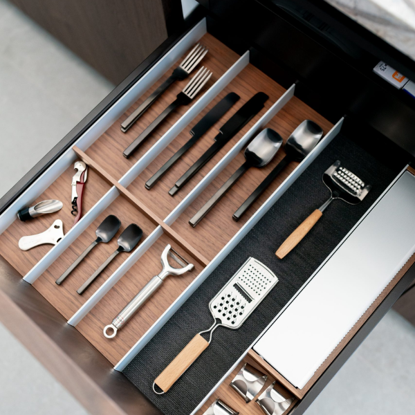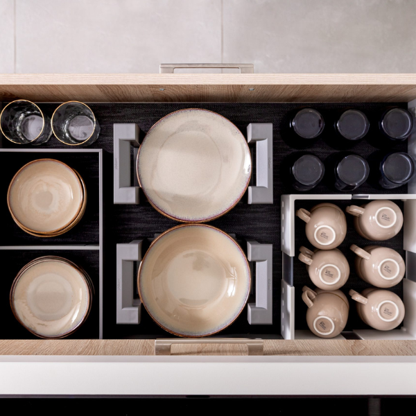 Met de Blum Orgalux fiber antislipmat voor lades blijven uw spullen keurig op hun plaats tijdens