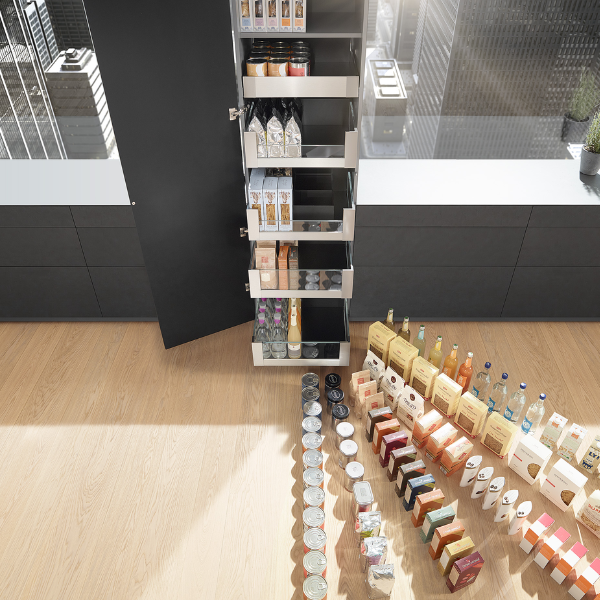 De Blum Space Tower is de indeling voor voorraadkasten met een breedte van 400 - 600 mm.