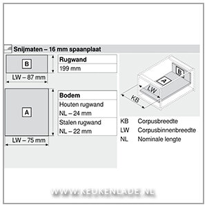 Deze set is geschikt voor het maken van een Blum TANDEMBOX antaro DM lade met TIP-ON en BLUMOTION met inbouwhoogte 228 mm.