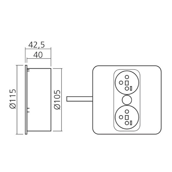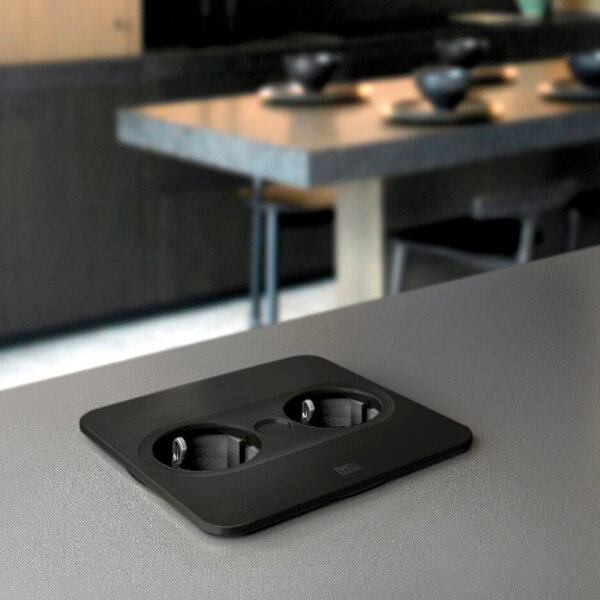 Twist 2 is een ruimtebesparend stopcontact met geringe inbouwhoogte. Het deksel van de Twist 2 opent automatisch wanneer u op de knop drukt.