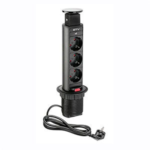 Uittrekbaar stopcontact met 3 aansluitingen 230V van GTV, zwart