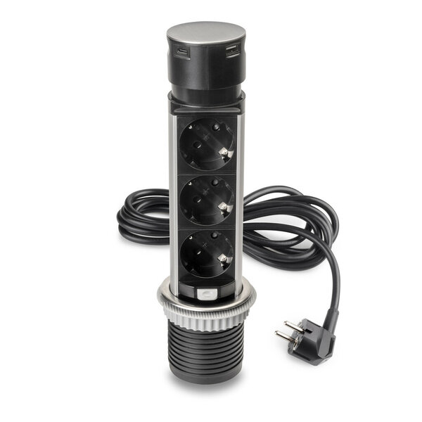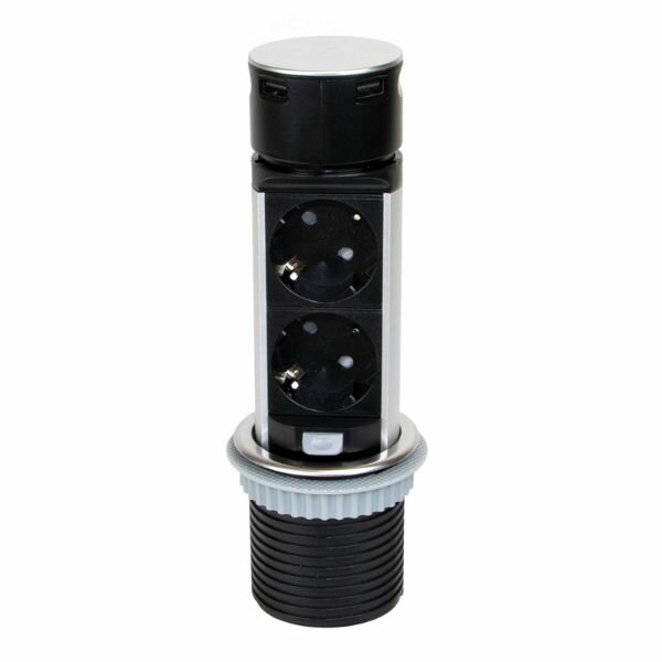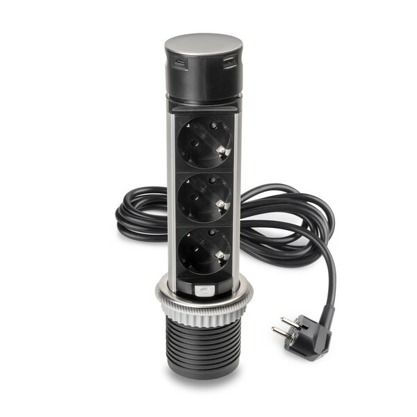 Dit uittrekbare stopcontact is voorzien van 2 stopcontacten en 2 USB poorten, waarvan 1 x USB-A en 1 x USB-C is. Na gebruik kan het stopcontact mooi worden weggewerkt in uw keuken- of werkblad.