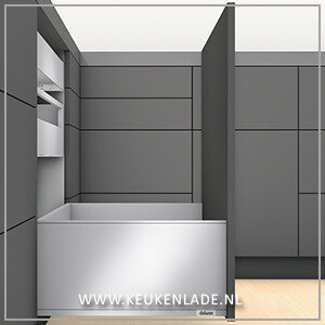 Belangrijk verschil met de andere lades uit de Blum serie is dat de binnenkant van de lades strak en recht zijn en dus geen ronde kanten meer hebben.