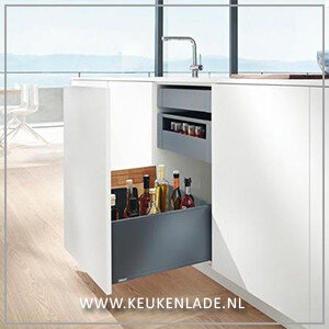 Blum LEGRABOX keukenlade met TIP-ON, inbouwhoogte van 256,5 mm.