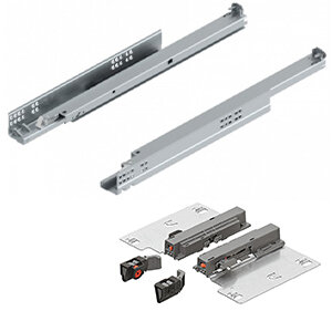 De Blum Tandemgeleider is volledig uittrekbaar en voorzien van TIP-ON (druksluiting)